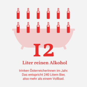 In Österreich gelten 5 % der erwachsenen Bevölkerung ab 15 Jahren als alkoholabhängig (2,5 % der Frauen und 7,5 % der Männer). Das sind ungefähr 370.000 Menschen. Dass eine Alkoholabhängigkeit entstehen kann, liegt an der Wirkung des Alkohols auf die Botenstoff‐ und Belohnungssysteme im Gehirn.
