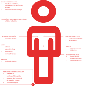 - Entwicklung einer Toleranzerhöhung, d. h. es muss immer mehr getrunken werden, um die gleiche Wirkung zu erzielen